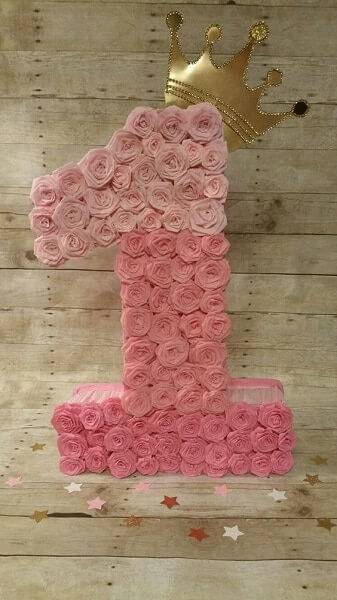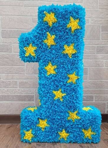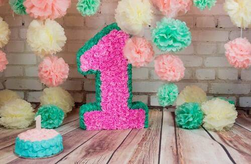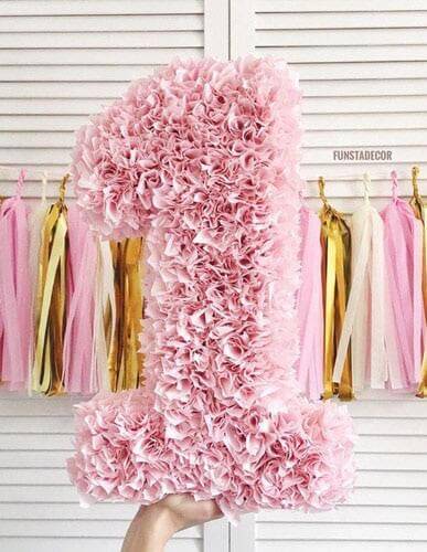 - Пиньята. Этот вид декора набирает популярность с каждым днем: конфетти, игрушки, сладости… Чем еще можно ее наполнить? Единичка на годик будет тоже кстати!