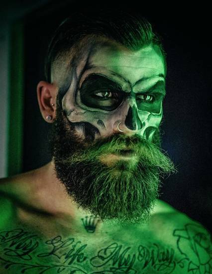 Страшный макияж на Хэллоуин – прерогатива мужчин. Они не боятся показаться в жутком, мрачном виде и даже вызвать своим обликом неприятные чувства. Чаще грим на Хэллоуин для мужчин подчеркивает силу, властность, мощь, стихийность, неуправляемость, безжалостность персонажей.