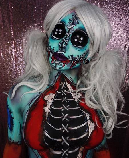 - Макияж куклы на Хэллоуин