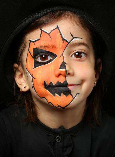 Макияж на Хэллоуин для детей восхищает в любом образе. Маленькие привидения и скелетики, ведьмочки и феечки, кошечки, тыковки Джека больше умиляют, чем пугают. Аквагрим на Хэллоуин безопасен для детской кожи, он хорошо держится на лице и легко смывается.