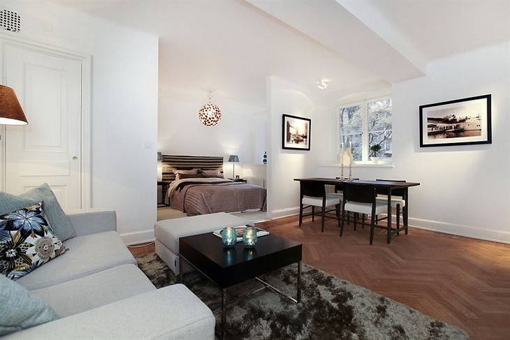 Дизайн квартиры выполнен в скандинавском стиле, ее площадь меньше 50 кв.метров.