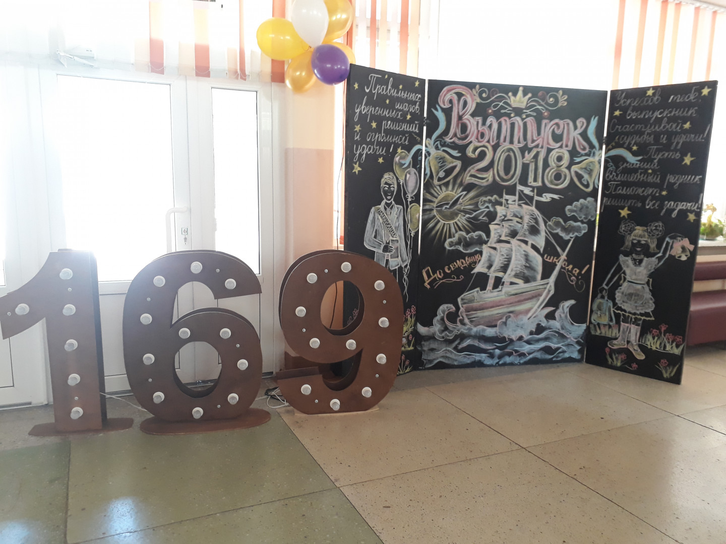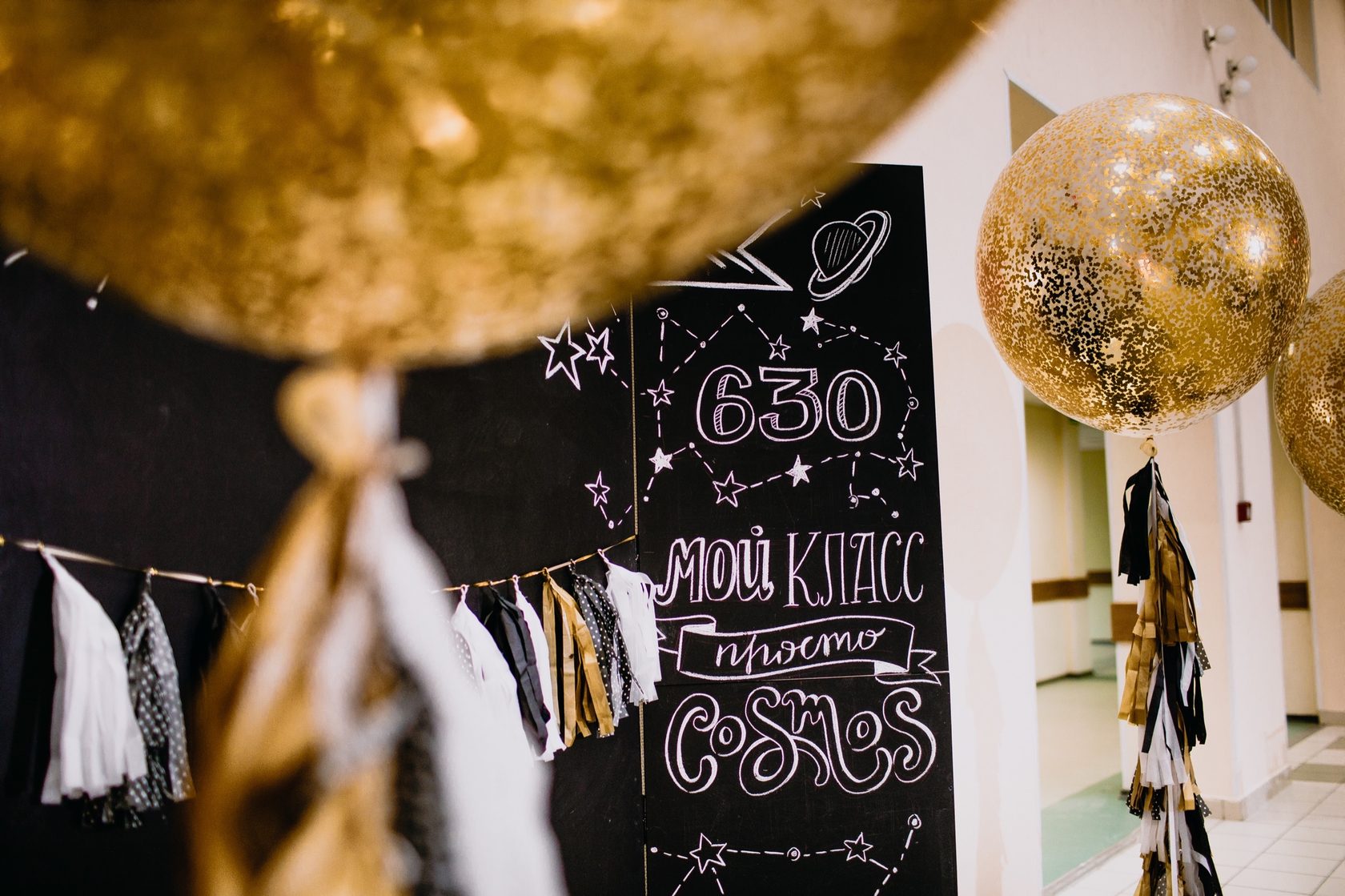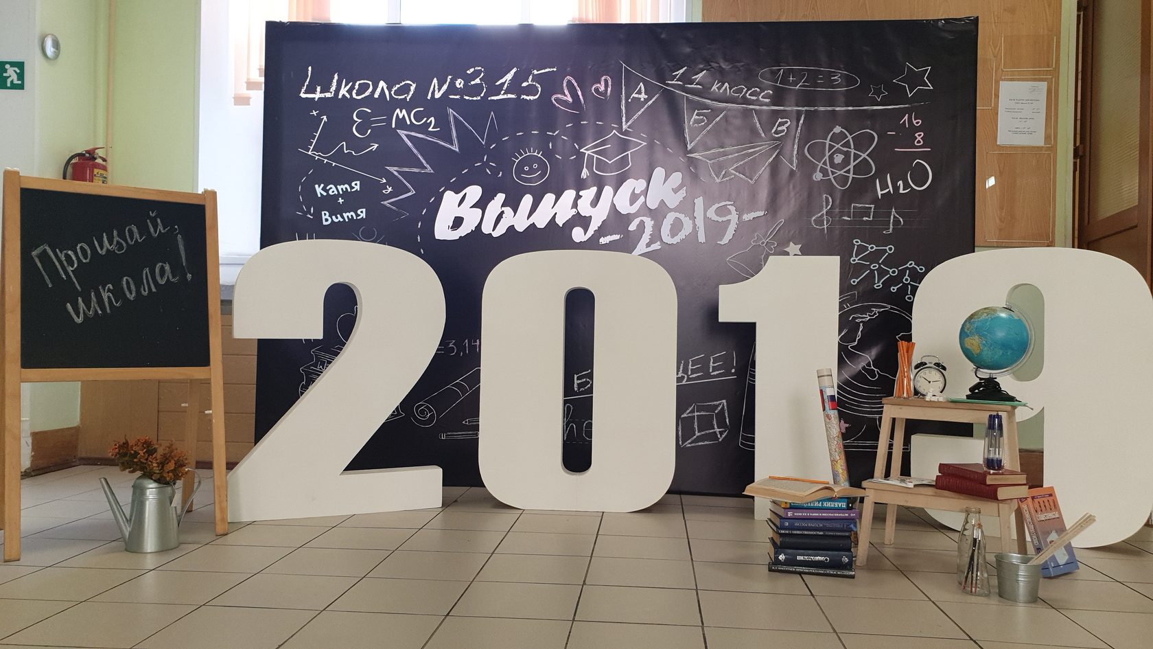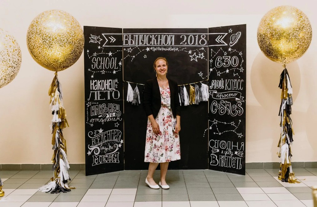 Будет хорошо смотреться зона, связанная конкретно со школьной тематикой: например, школьная доска, где будет написано «Выпускной».