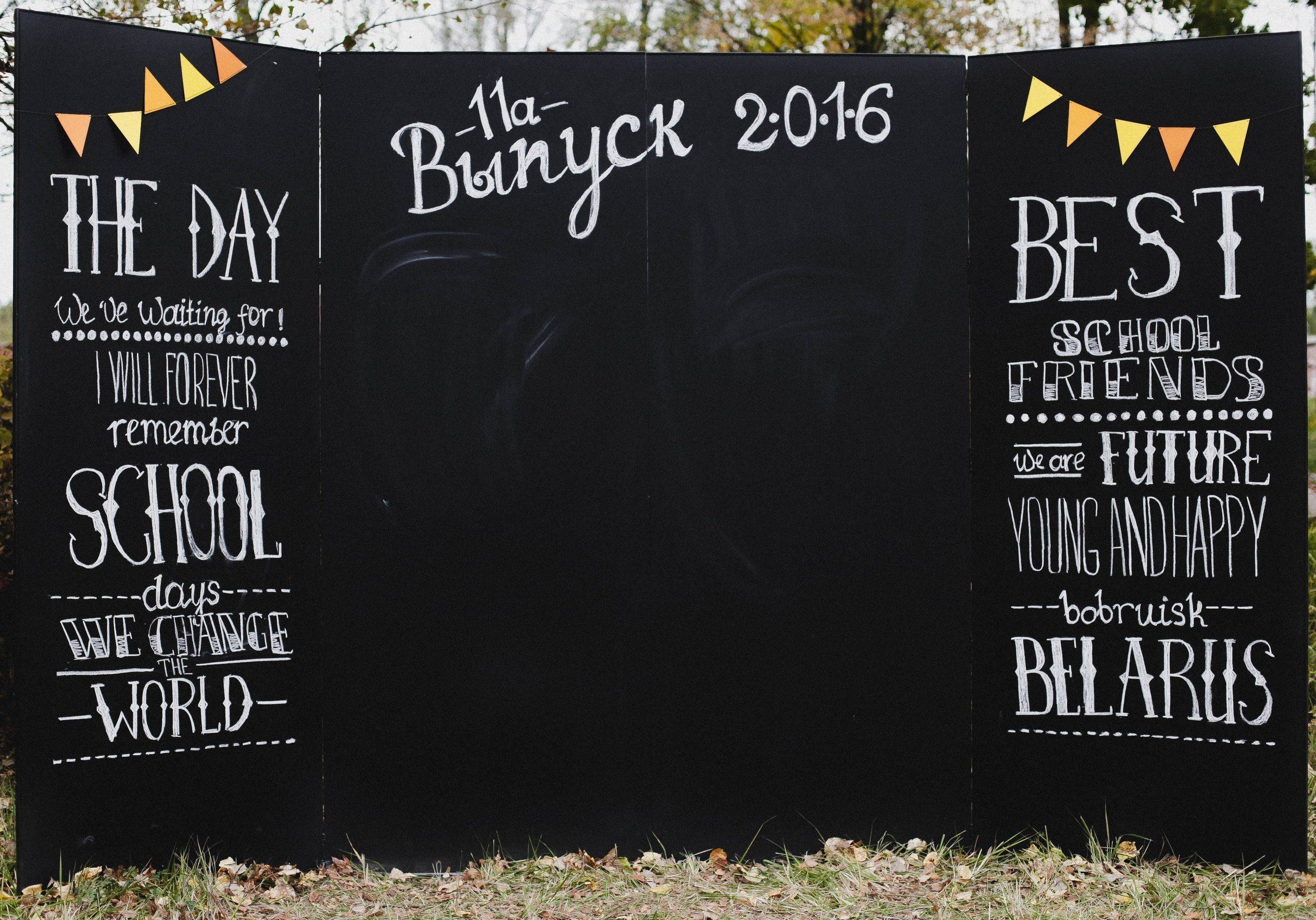 В первую очередь нужно определиться с тем, где будет размещена фотозона на выпускной: в школе, на улице или в живописной природной зоне, если предполагается выездная фотосессия. Фотозона или баннер на последний звонок в школе должны гармонировать с тем местом, куда вы тих собираетесь установить.